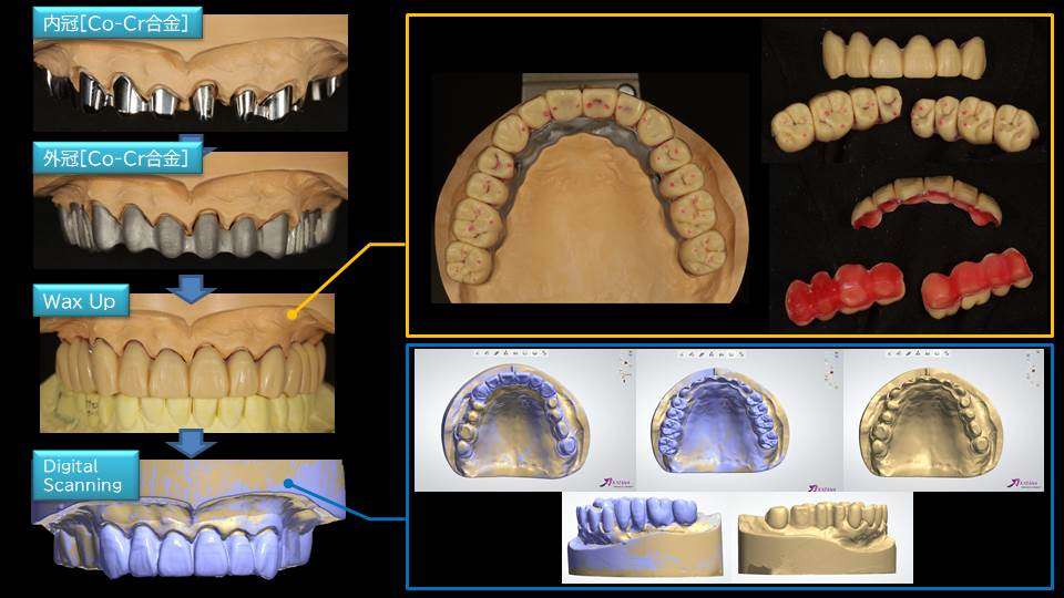 (テレスコープ義歯:Co-Cr-Mo合金を使用 / インプラント:SPI社 CONTACT を使用)