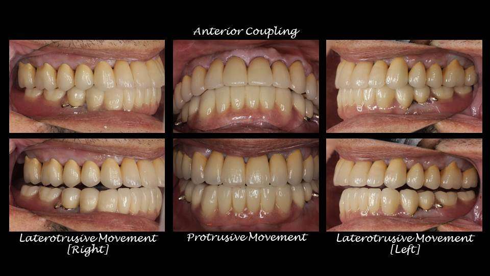 写真は、歯周病と酷い歯軋りでグラグラな歯ばかりになってしまった患者様のセラミックスとテレスコープ義歯です。上顎は「メタルボンド セラミックス」冠を被せる治療を、下顎は「茶筒式の入れ歯」である「コーヌス テレスコープ」で治療させて頂きました。バネ式の入れ歯ではありませんので、一度得られた歯並び、咬み合わせ、装着感には長期に渡って変化がありません。