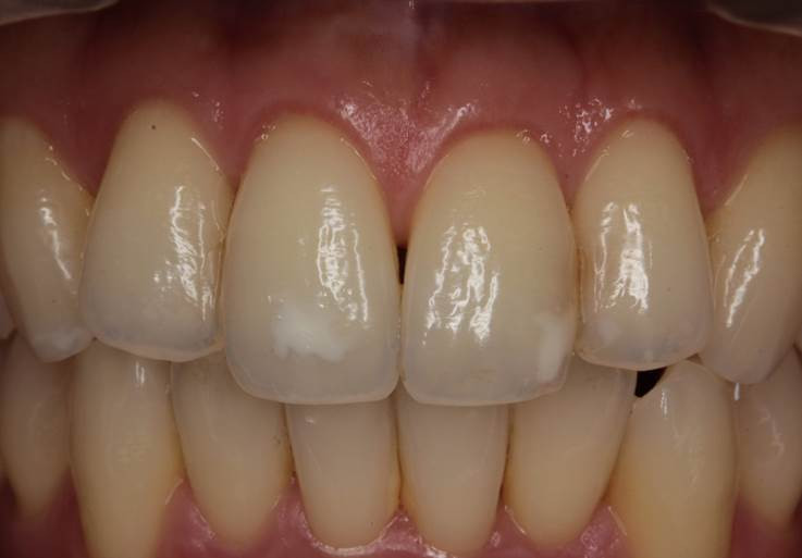 前歯部に白斑が見られます。