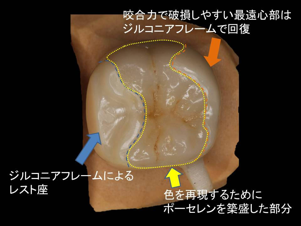 「割れる」問題をクリアするべく、臼歯部の過大な咬合力に耐え得るメタルフリー材料として「ジルコニア」が薬事認可され、近年のCAD/CAM (Computer Aided Design/Computer Aided Manufacturing) テクノロジーと、優れた接着システムの確立と発展、普及に伴い、臨床応用されています。