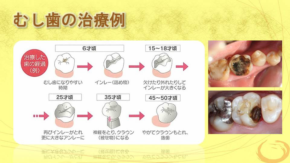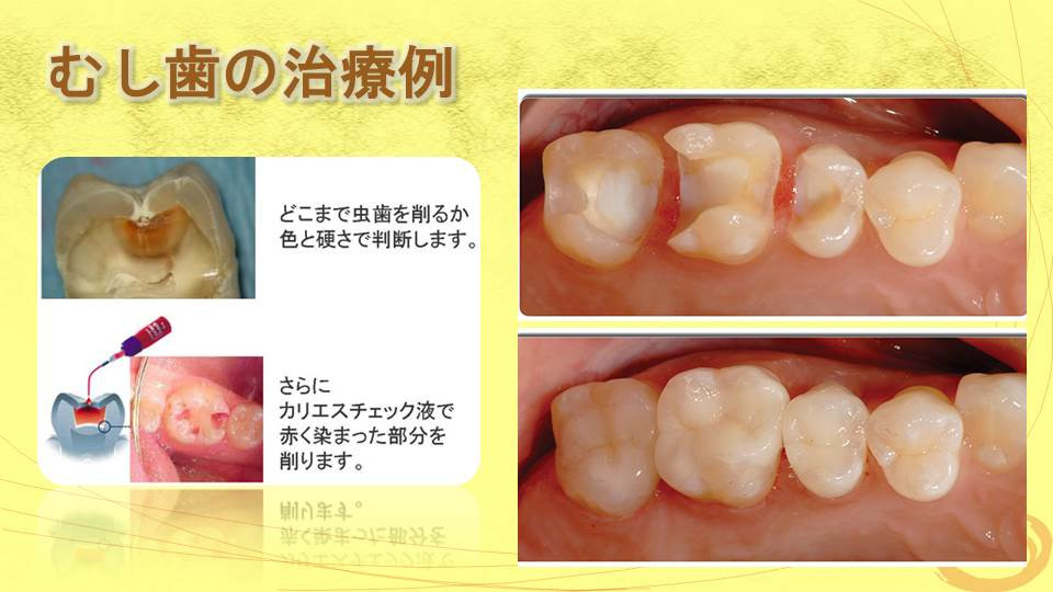 虫歯治療の第一は齲蝕の徹底除去、第二に生体に合った材料の選択です。