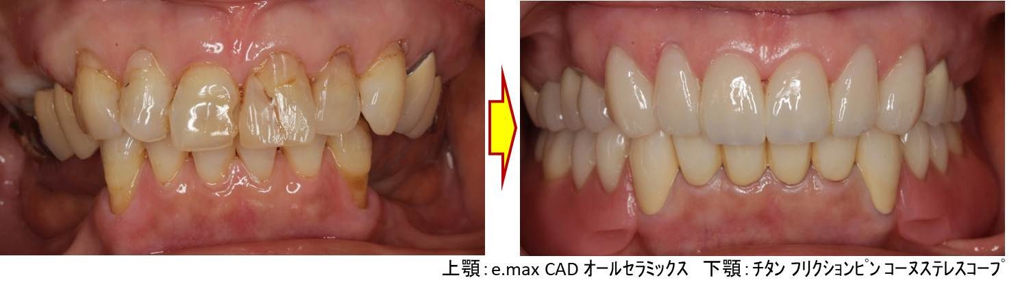最善の治療方法として、患者様には上顎をセラミックス、下顎をテレスコープを治療選択して頂きました。