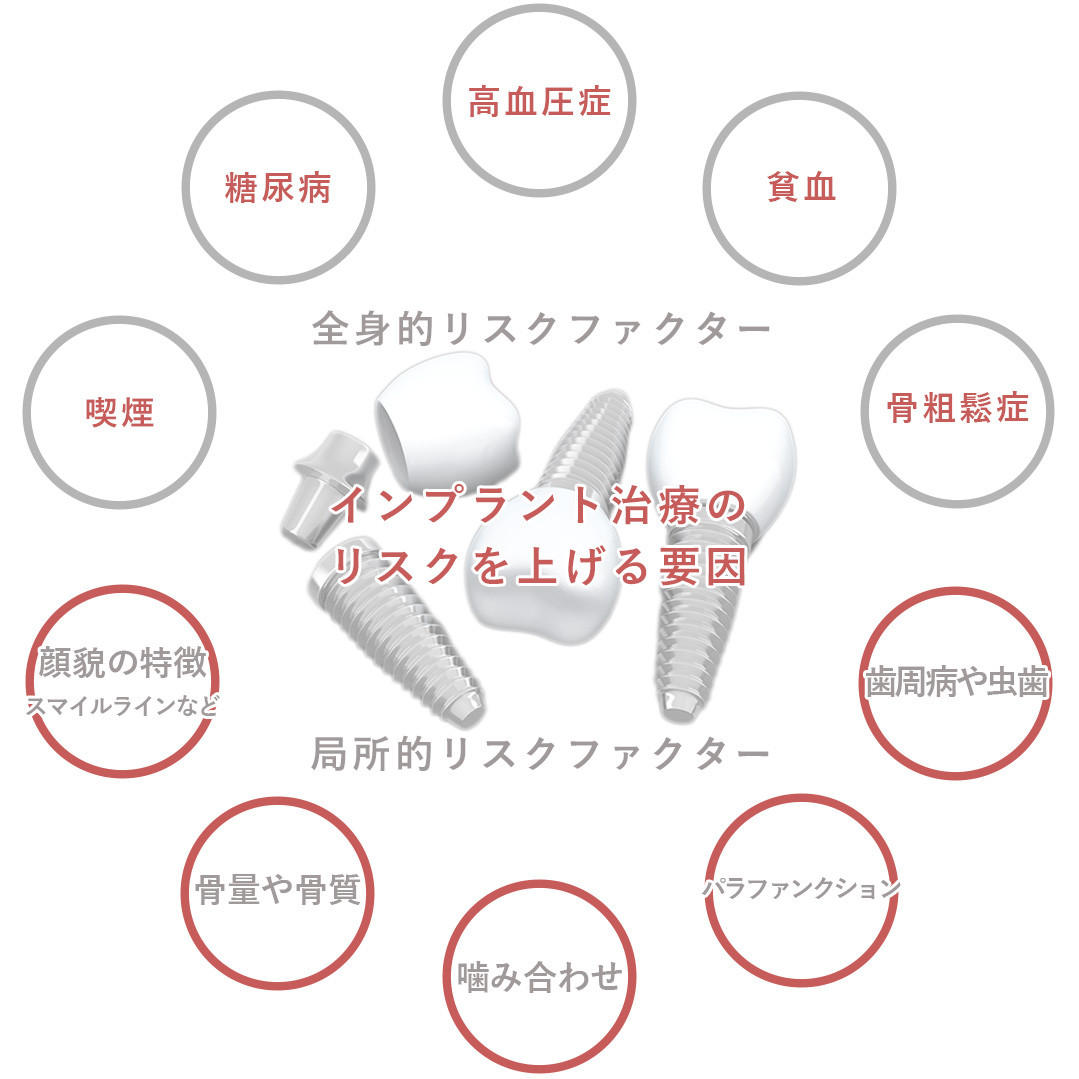 ブリッジや義歯(入れ歯)と同じく、「インプラント」にも寿命があることが近年になって理解が進んできました。直接骨に埋め込むことから「永遠に骨に引っ付いて機能している」と考えるのは昔の話です。インプラント治療の寿命が気になるという方は多くいらっしゃいます。インプラントは、患者様それぞれにあった適切な使用方法によって寿命を延ばすこともできます。