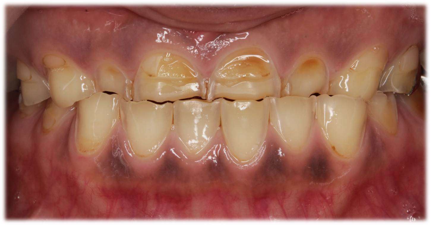 写真画像は,長期に渡り歯が酸に曝露された患者様のお口の様子です。もし,「歯が小さくなってきたかな?」,「歯が削れてきてしみるようになってきたかな?」などの症状でお困りの際には,是非,グランツ歯科クリニックまでご相談ください。補綴専門医・IPSG咬合認定医が相談に乗ります。